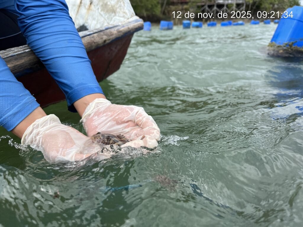 A parceria com os ostreicultores da Vila de Lauro Sodré começou quando eles relataram a presença de meros juvenis na região. “Hoje, o monitoramento ocorre em dois cultivos do rio Muriá, o da AQUAVILA e o do Eco Hotel Leão de Judá, com apoio direto do vice-presidente da associação, Sr. Zico. O trabalho também se estendeu à Ilha de Pacamorema, indicada por pescadores como área de alta ocorrência de juvenis. Assim, o monitoramento integra ostreicultores, pescadores e lideranças comunitárias na identificação de áreas-chave para a conservação”, explica Luana Mescouto, supervisora de pesquisa do Meros.